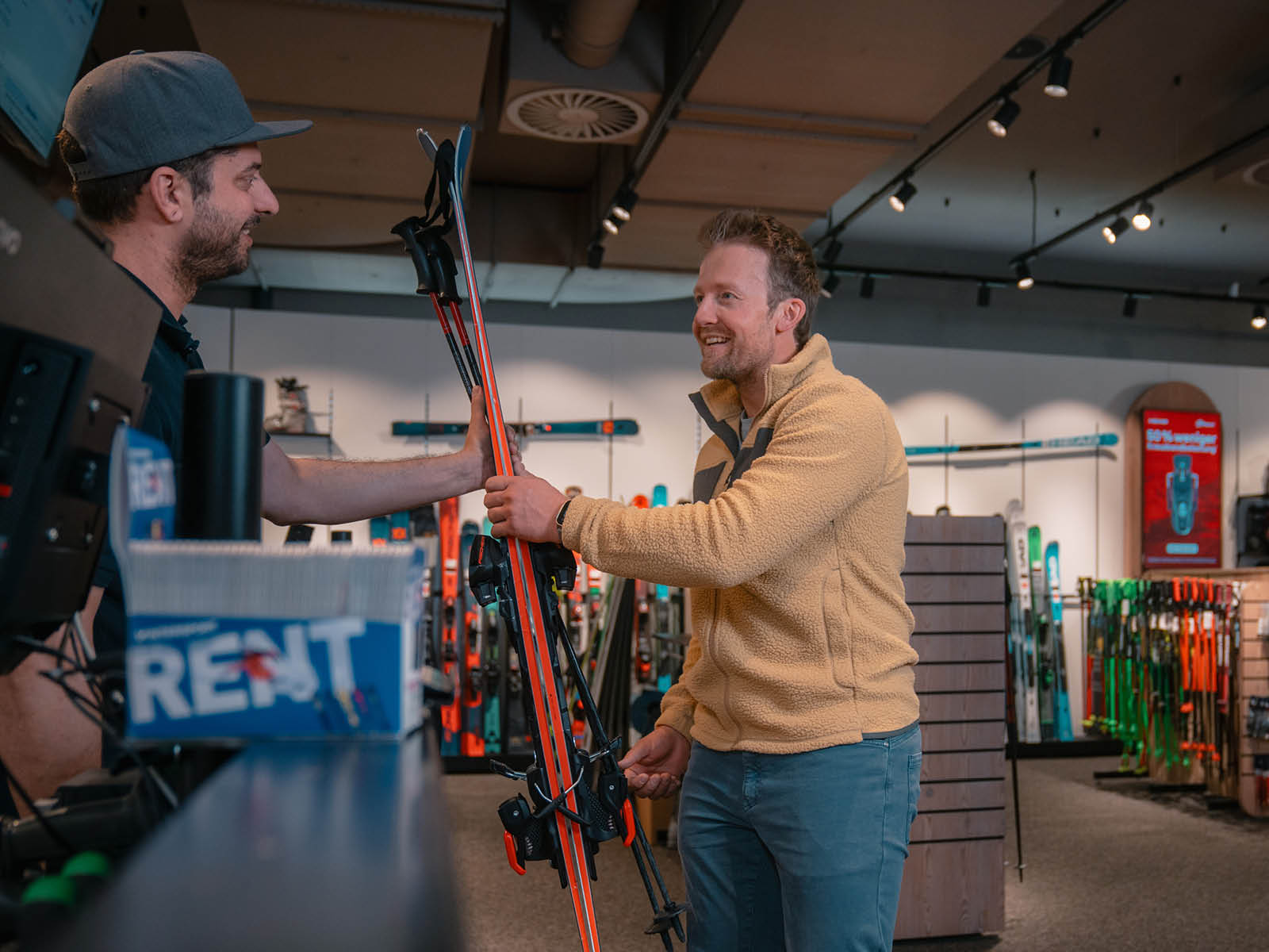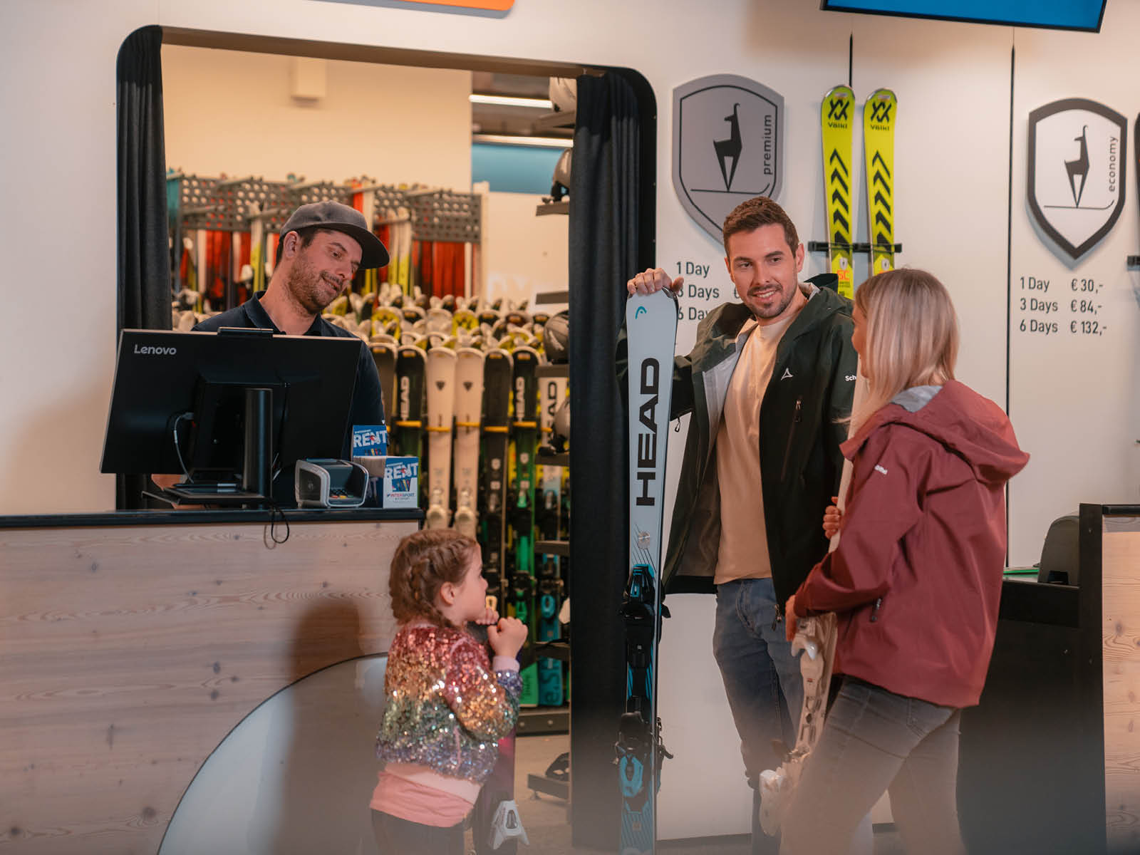 Unser Verleihservice ist ideal für Gäste, die ohne eigene Ausrüstung anreisen. Wir bieten ein breites Angebot an top-aktuellen Skiern, Snowboards, Skischuhen und -bekleidung für Erwachsene und Kinder. Neben dem Verleih kannst du in unserem Verkaufssortiment hochwertige Winterbekleidung und wichtige Accessoires wie Helme, Handschuhe und Skibrillen erwerben – perfekt für deine optimale Ausstattung.
